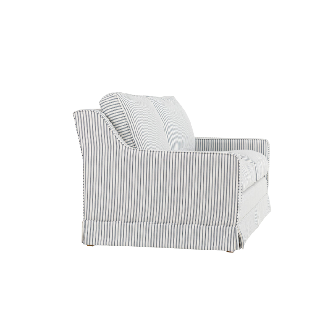 The Lucy sofa is a traditional skirted design with loose back and seat cushions margin it a wonderfully comfortable design without compromising on style. The seat and back cushions come standard with feather wrapping for extra squish, but this can be omitted on request if you prefer a straight foam fill. Available in several sizes from armchair to 4 seater, including a sofa bed option. Handmade in Brisbane from quality hardwood and foams.